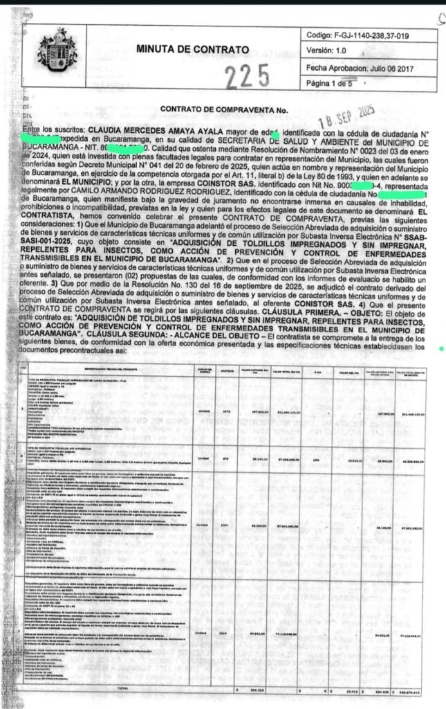 Todo empezó con una convocatoria que parecía rutinaria: la alcaldía de Bucaramanga buscaba adquirir toldillos impregnados y repelentes, crucial para proteger a miles de ciudadanos del dengue y el zika, hoy es el epicentro de un escándalo que huele a negligencia administrativa y, posiblemente, a algo más turbio que el Dengue. Pese a qué a la convocatoria se postularon dos candidatos, al parecer las exigencias detalladas en el Pliego de Condiciones, para esta licitación parecen estar diseñadas a la medida o constituir un ‘pliego sastre’, ya que los requisitos técnicos y de experiencia se ajustan de manera excesivamente específica y restrictiva a las capacidades de una sola empresa. Esta situación vulnera el principio de transparencia y libre concurrencia de oferentes, lo cual es esencial en todo proceso de contratación pública, comprometiendo la objetividad en la selección del contratista.» según la Veeduría Ciudadana Activa Santandereana, el proceso beneficio a la empresa COINSTOR S.A.S.