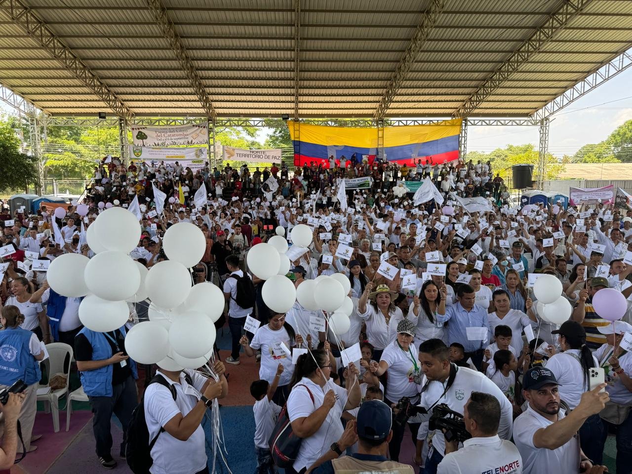 organizaciones sociales, lideres sociales, defensores y defensoras de derechos humanos, empresarios, académicos, movimientos comunales del Catatumbo y organizaciones de campesinos, quienes se hasta el municipio de Tibú, en respaldo a los procesos de paz y con la solicitud a los actores armados que operan en la región de mantenerse en los diálogos de paz con el Gobierno nacional.