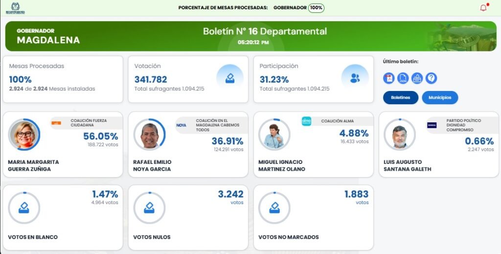 El Magdalena volvió a las urnas este 23 de noviembre de 2025 para elegir gobernadora en unas elecciones atípicas marcadas por la expectativa política, la participación moderada y un fuerte despliegue institucional para garantizar la seguridad. Al final del día, María Margarita Guerra Zúñiga fue elegida como nueva mandataria departamental, tras obtener una amplia ventaja en el preconteo.