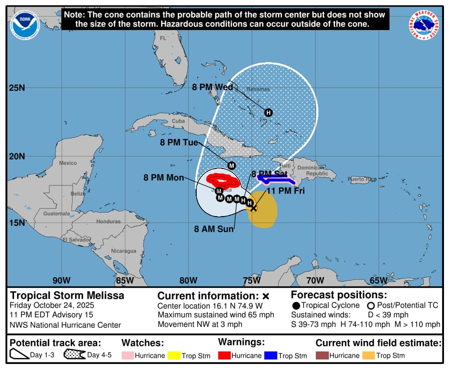 El próximo boletín oficial se emitirá a las 8:00 a.m. del 25 de octubre de 2025, o antes si las condiciones meteorológicas lo requieren.